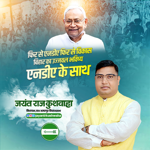 जयंत राज कुशवाहा बिहार के 159-अमरपुर (Amarpur) विधानसभा क्षेत्र से विधायक (MLA) हैं। वे जनता दल (यूनायटेड) – JDU पार्टी से जुड़े हैं और इस सीट से कई बार जीत हासिल कर चुके हैं। 2025 के चुनाव में भी उन्हें भारी मतों से जीत मिली।